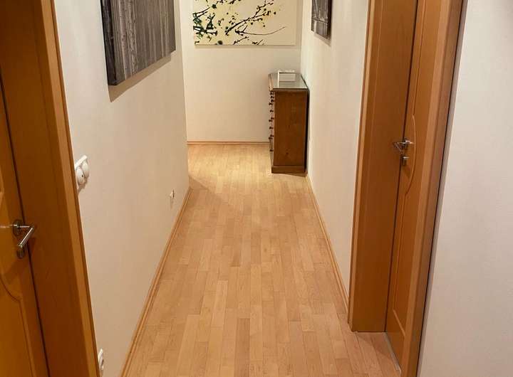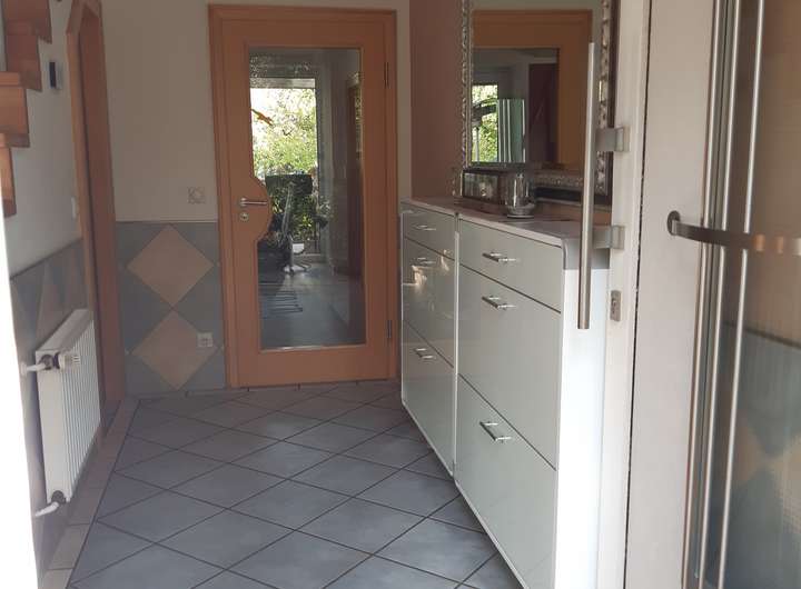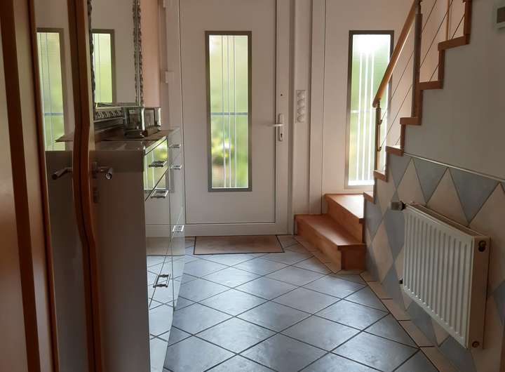 - Feinsteinfliesen in Küche und Bädern sowie im Eingangsbereich und Keller
