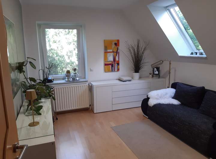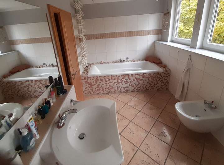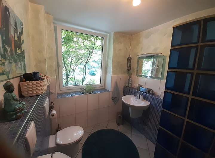 In der ersten Etage befindet sich ein großzügiges, helles Badezimmer mit Badewanne, Dusche, Fußbodenheizung und einem herrlichen Blick in den Garten. Insgesamt 3 weitere Zimmer stehen Ihnen hier zur Verfügung, von denen sich das größte (ca. 32 qm) auch schnell in zwei einzelne Räume (zurück-)verwandeln ließe.