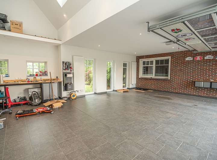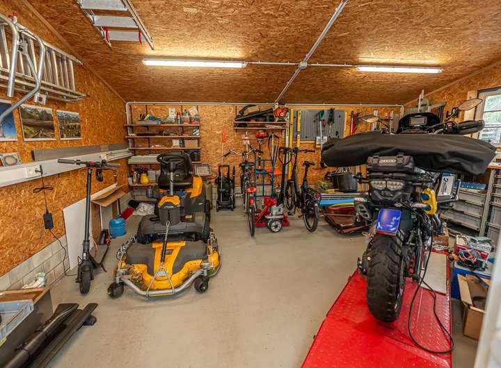Das absolute Highlight, der ohnehin schon tollen Immobilie mit großartigen Grundstück, ist der 2022 erbaute Anbaubereich im westlichen Bereich des Haupthauses. Von außen wurde auf die Eingliederung der charmanten und originalen Fassade vom Haupthaus geachtet, wodurch eine tolle Optik entsteht. Das große und elektrische Garagentor eröffnet viele tolle Nutzungsmöglichkeiten. Der massive und große Hobbybereich umfasst fast 60 m² in einem Raum und ist nicht nur modern gefliest, sondern verfügt zudem über eine angenehme Fußbodenheizung. Eine kompakte zweite Ebene im Teilbereich dieses Anbaus, ermöglicht zudem vielfältige Lagerfläche.