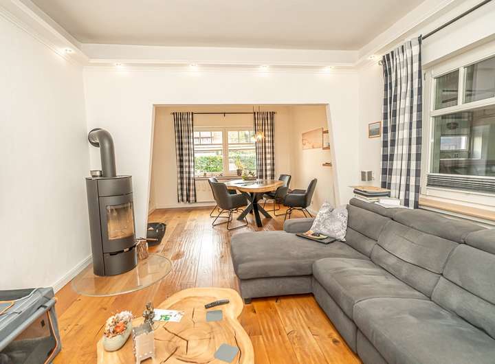 Am Haupthaus wurde seit 2008 viel Hand angelegt und es wurde versucht den Charme des Altbaus aufleben zu lassen, aber auch in Verbindung mit einer energetischen Aufwertung des Gebäudes. Es wurde zum Beispiel eine neue Gastherme verbaut, neue Fenster eingesetzt, das Krüppelwalmdach neu gedämmt und eingedeckt und eine Hohlschichtisolierung vorgenommen. Diese ganzen Maßnahmen lassen das Kaminfeuer im Wohnzimmerbereich noch mehr wirken, da es eine wohlige Wärme im ganzen Haus verstrahlt.