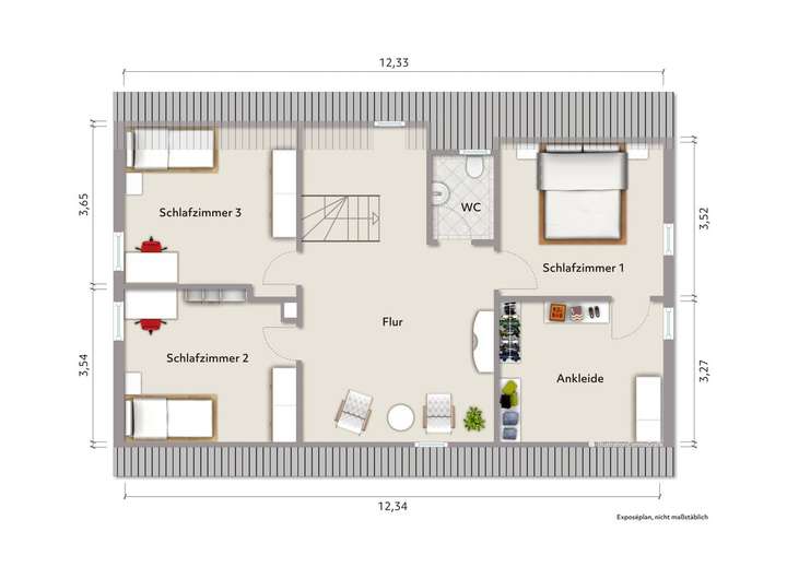 DG: 3 Schlafzimmer, Ankleidezimmer, Gäste-WC, Flur
