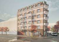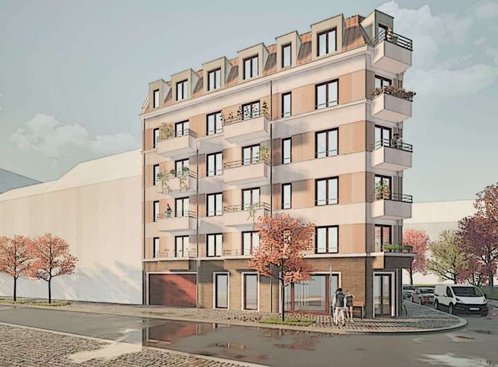 Eine harmonische Einfügung des geplanten Baukörpers in die umliegende Bebauung ist gewährleistet. Die Genehmigungsplanung sieht die Errichtung eines modernen Mehrfamilienhauses mit Flachdach und extensiver Dachbegrünung in markanter Ecklage vor. Alle Wohneinheiten sind mit einem Balkon ausgestattet und verteilen sich auf vier Vollgeschosse sowie ein ausgebautes Dachgeschoss.