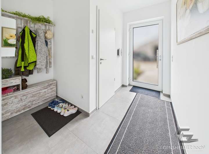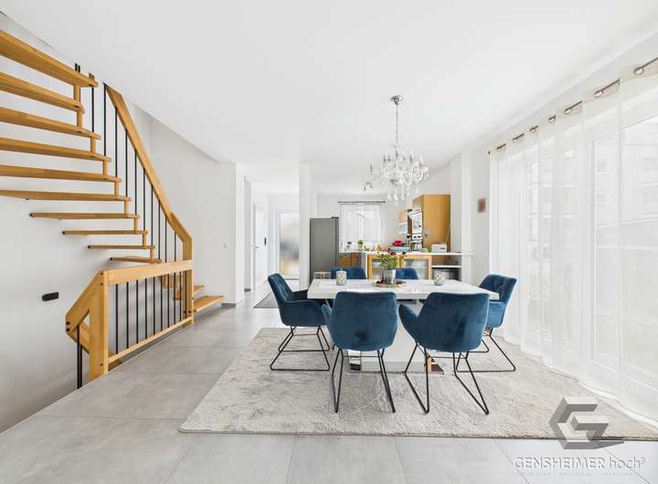 Im Erdgeschoss empfängt Sie ein einladender Eingangsbereich mit Flur, von dem aus Sie in den großzügigen, offen gestalteten Wohn- und Essbereich mit angrenzender Küche gelangen. Über den Wohnbereich gelangen Sie auf die Terrasse und in den Garten, die zum Entspannen, Spielen oder gemütlichen Beisammensein einladen. Ein Gäste-WC ergänzt das Raumangebot auf dieser Ebene.
