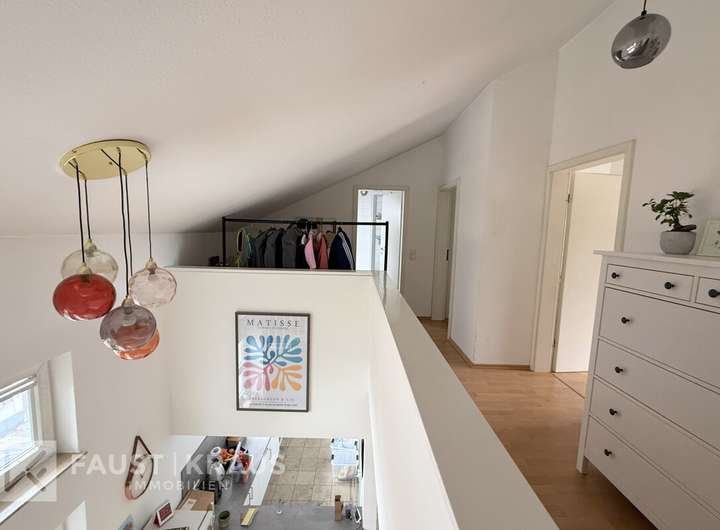 Die Ausstattung des Hauses umfasst strapazierfähige Laminat- und Fliesenböden, die nicht nur langlebig, sondern auch pflegeleicht sind – perfekt für die Vermietung. Einbauküchen sind in der Wohnung im 1.OG und in den beiden Maisonettewohnungen ebenfalls vorhanden und stellen einen zusätzlichen Anreiz für potenzielle Mieter dar. Der südlich ausgerichtete Balkon bietet Mieterinnen und Mietern einen sonnigen Freiraum zur Erholung.