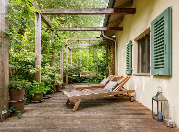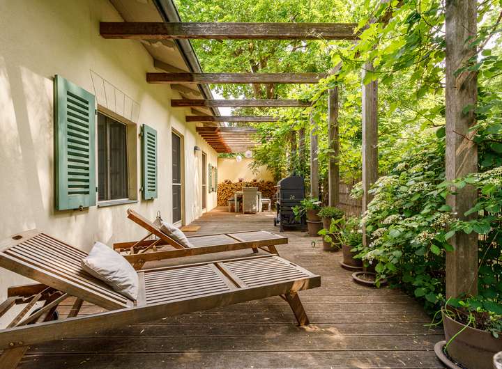 • Traumhafte Terrasse mit Blick auf das Jagschloss Glienicke