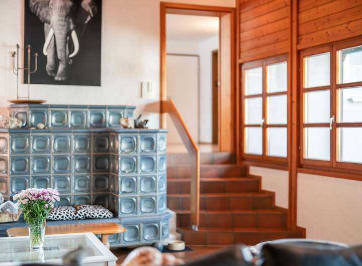 - Kachelofen im Wohnzimmer