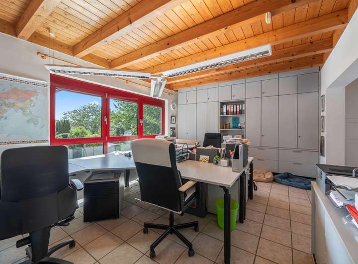 Im Zuge des Umbaus des ehemaligen Scheunentrakts wurden dort im EG großzügige Gewerbeflächen eingerichtet – aktuell genutzt als Verkaufs- und Seminarraum sowie mit moderner Gastroküche und Kühlraum. Diese Bereiche lassen sich flexibel anpassen und eröffnen vielfältige Perspektiven für Geschäft, Veranstaltungen oder auch eine mögliche Umnutzung in weiteren Wohnraum.