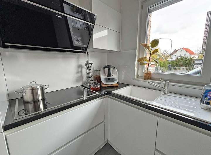 Einbauküche ausgestattet, die harmonisch in das stilvolle Gesamtbild