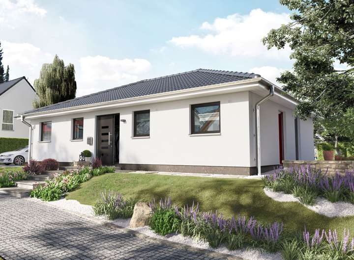 Angeboten wird unser Bungalow 110. Für eine Familie mit zwei Kindern ist der Bungalow 110 ein ideales Zuhause. Er bietet ein gemütliches Wohnzimmer mit Essbereich, ein geräumiges Schlafzimmer und zwei weitere Zimmer. Alle Räume sind dank großer Fenster hell und freundlich. Mit quasi einem Schritt sind Sie mit Ihren Liebsten im Garten und können die Sommerzeit bei einem Grillabend genießen.