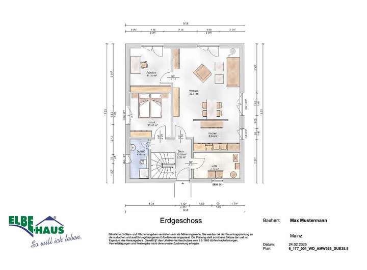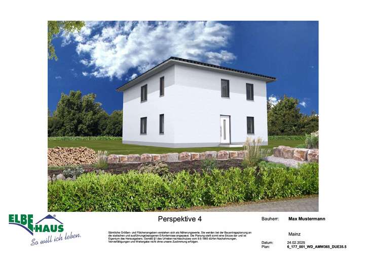 Dieses innovative Elbe-Haus® wird in massiver Bauweise von qualifiziertem Fachpersonal errichtet. Wir planen und projektieren nach Ihren Vorstellungen und Wünschen und somit ist wirklich jedes Haus einzigartig. Beachten Sie bitte, dass das abgebildete Haus lediglich ein Bebauungsbeispiel ist. Das Grundstück kann unter Berücksichtigung der örtlichen Bauvorschriften mit Ihrem Wunschhaus von Elbe-Haus® errichtet werden.