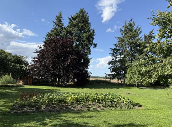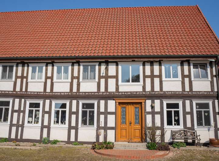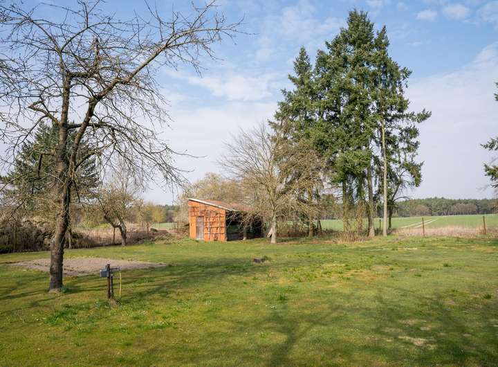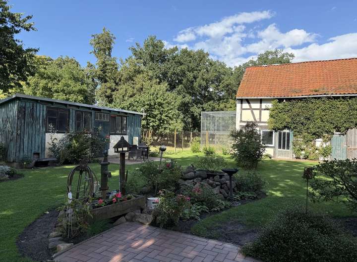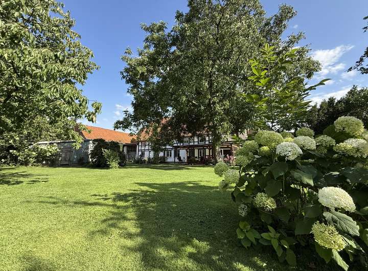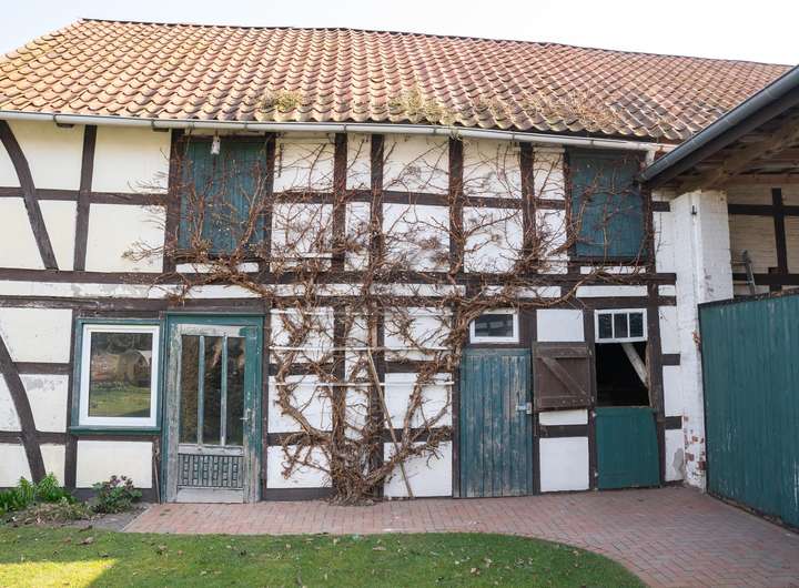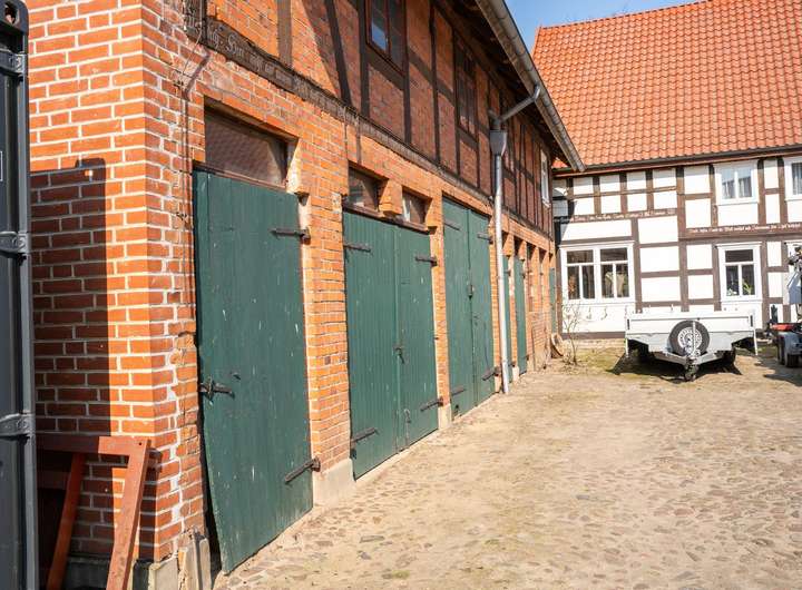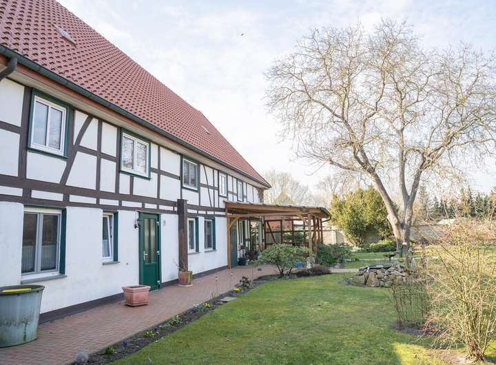 Die Immobilie besteht aus einem großen Haupthaus (296 qm Wohnfläche), welches zurückgelegen auf dem Hof steht. Eingerahmt wird das Haus von einem Wirtschaftsgebäude, Ställen und einer großen Scheune. Der gepflegte Garten des Haupthauses besticht durch seinen Weitblick und die Ruhe und lässt mit dem vorhandenen Hühnerstall und Bienenstand viel Freiraum, kreativ zu werden. Fernab von Straße und Nachbarn ist Privatsphäre hier großgeschrieben.
