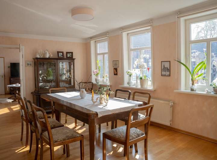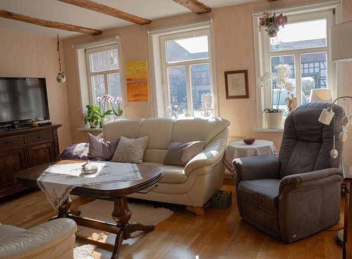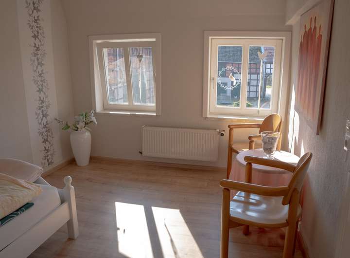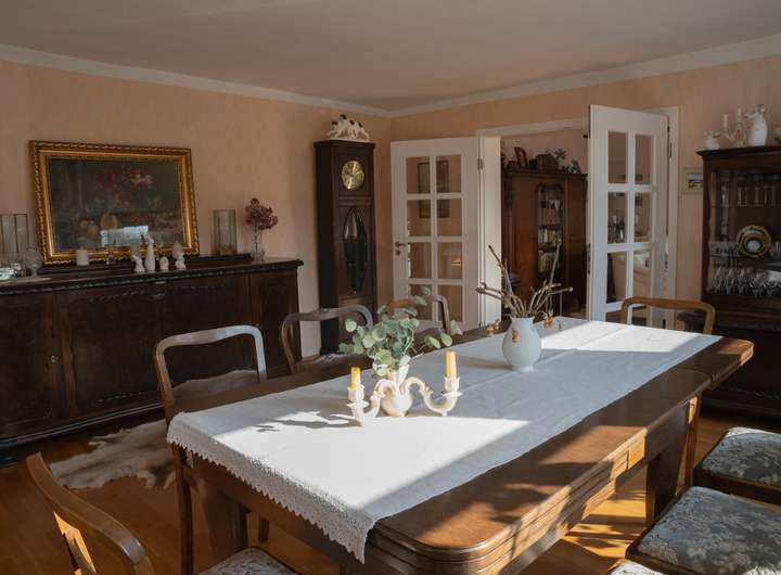 Das Altenteil (100 qm Wohnfläche), eine komplett separate Wohneinheit neben der Hofeinfahrt, besitzt einen eigenen Eingang und eigene Terrasse, sodass eine Vermietung oder Mehrgenerationswohnen leicht möglich ist. Das zurzeit vermietete Altenteil kann mietfrei übergeben werden.