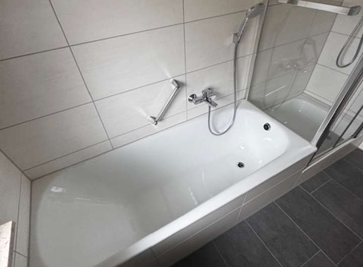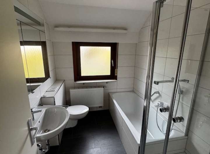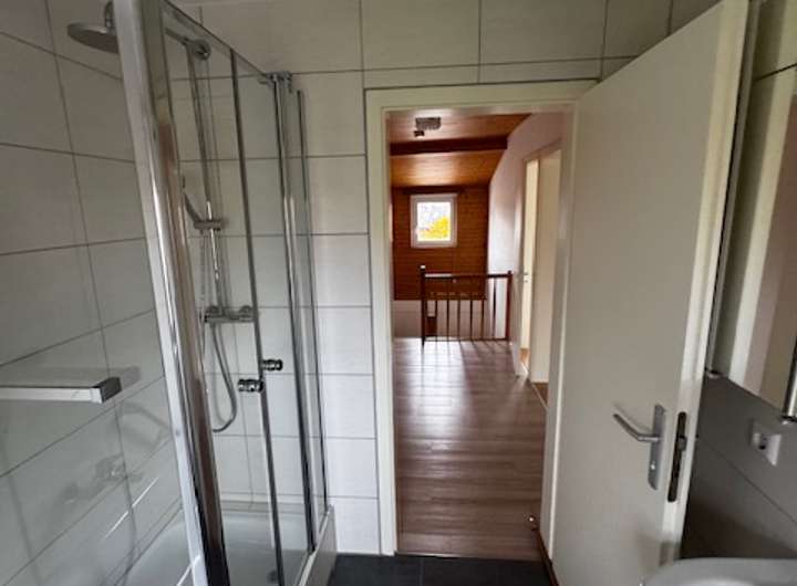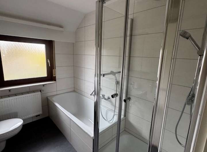 Im Dachgeschoss erwartet Sie ein stilvolles neues Badezimmer, während im 1. Obergeschoss ein zusätzliches Gäste-WC vorhanden ist.