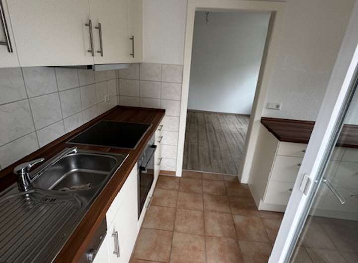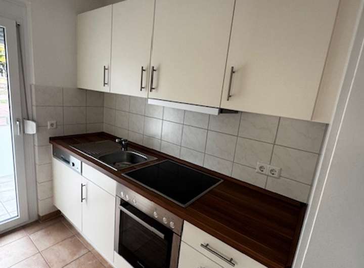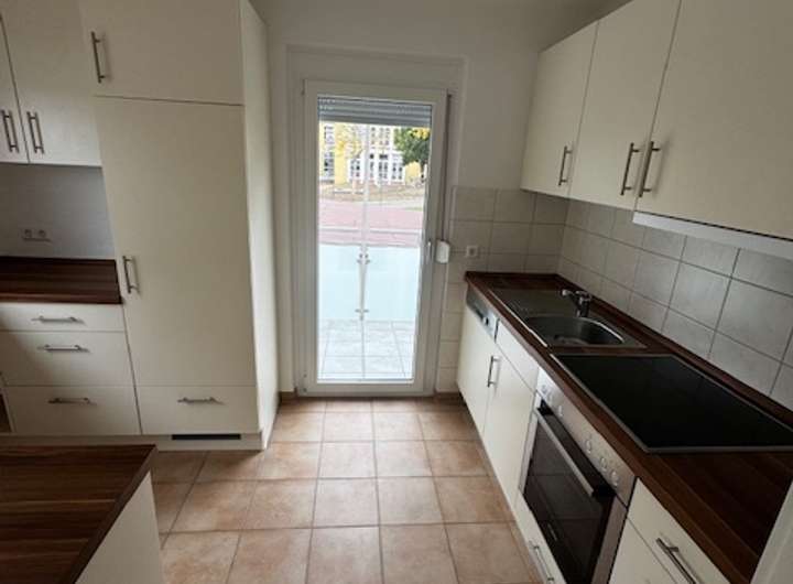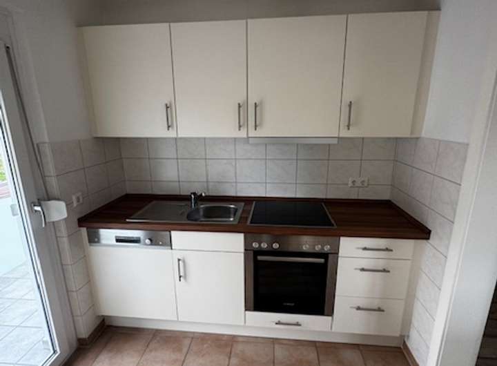 Im 1. Obergeschoss befindet sich die moderne Einbauküche mit direktem Zugang zum überdachten Balkon – perfekt für entspannte Stunden im Freien.