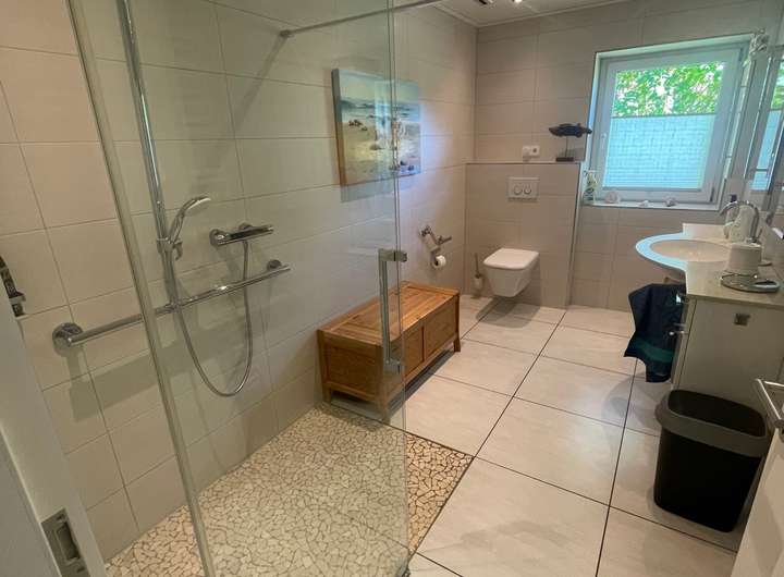 Im OG sind schon viele Gewerke erneuert worden z.B.: Elektrik mit Kabel, Sicherungen und Schaltkasten; die Fenster; die Fußbodenbeläge; die Decken; die Wände und das Duschbad.