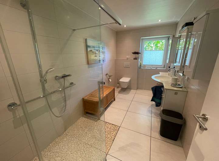 Die Wohnfläche im EG beträgt ca. 130 m² im und im DG ca. 70 m²  – insgesamt ca. 200 m².