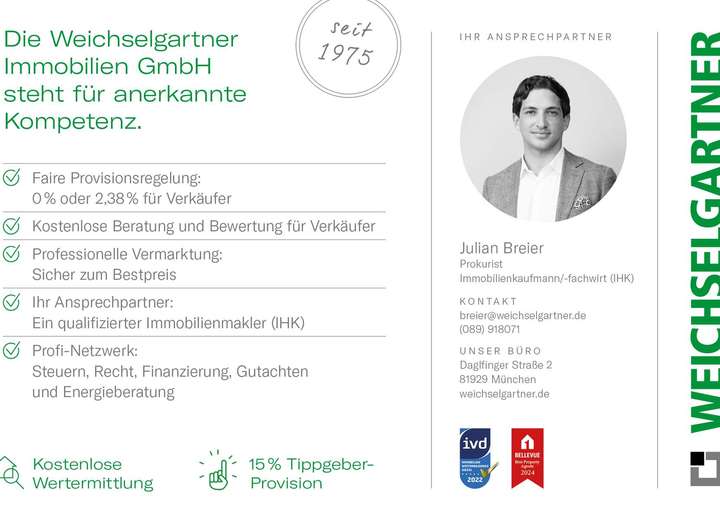 Wir möchten darauf hinweisen, dass sämtliche Fotos, Texte und grafischen Darstellungen ausschließliches Eigentum der Weichselgartner Immobilien GmbH sind und ohne unsere Genehmigung weder verwendet noch weitergegeben werden dürfen.