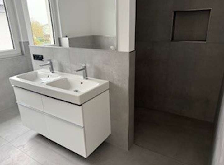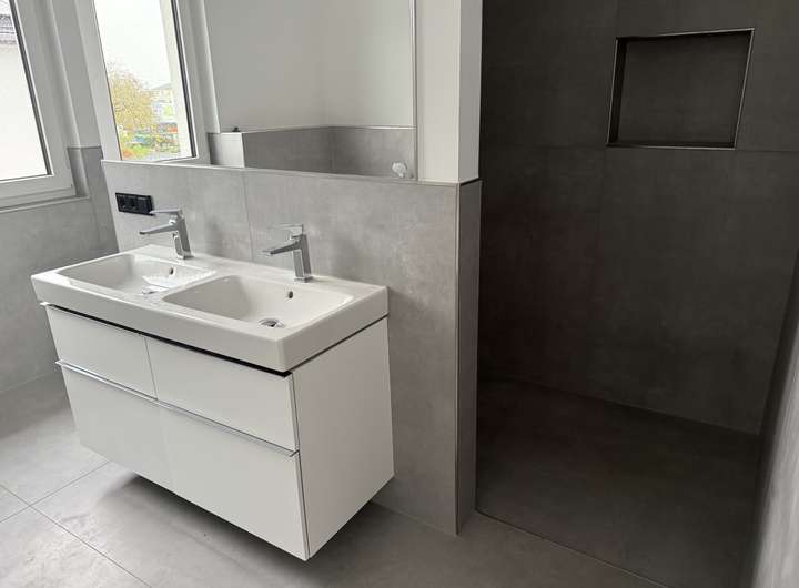 modernes Bad mit ebenerdiger Dusche