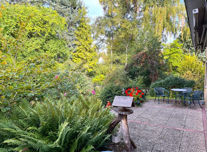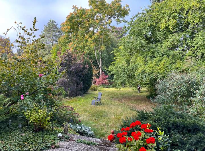 Von allen zum Garten hin ausgerichteten Räumen genießen Sie einen idyllischen Blick ins Grüne, fernab von Hektik und Lärm.
