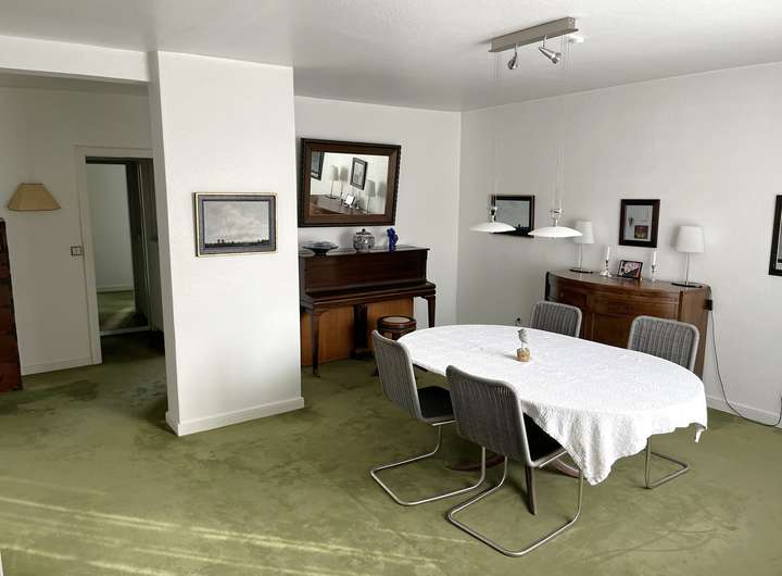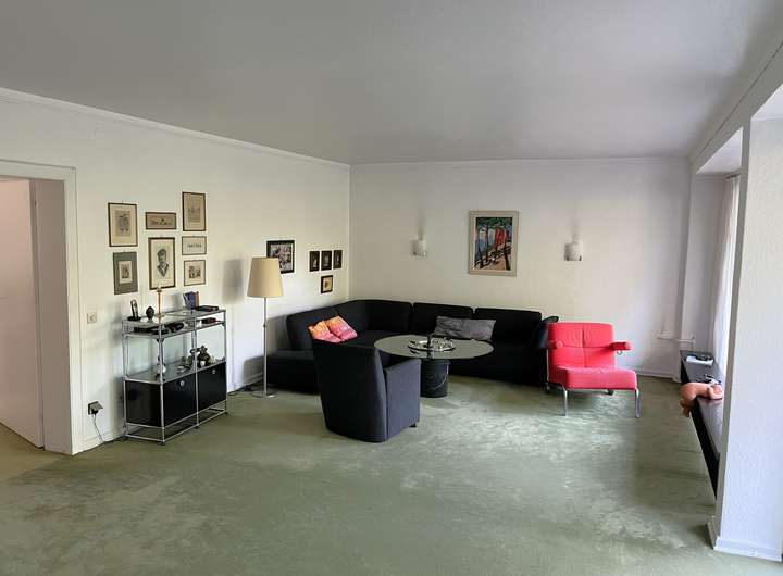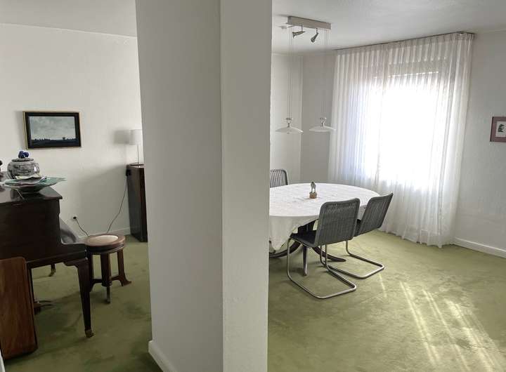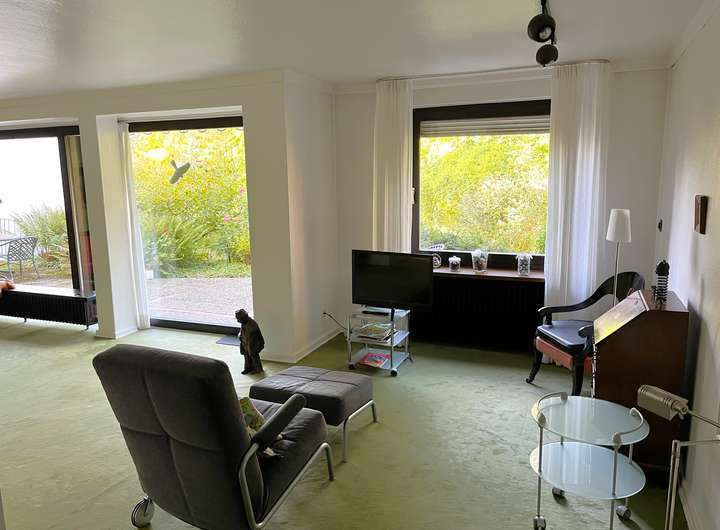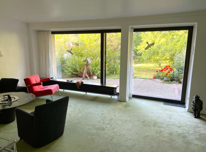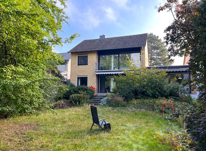 Das im Jahr 1961 erbaute Einfamilienhaus überzeugt durch seinen klassischen Charme und wurde 1980 um einen großzügigen Anbau erweitert.