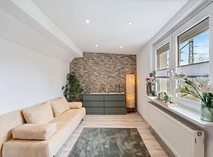 Die Bahnlinie verläuft in direkter Nachbarschaft. Dank geschickter Raumplanung werden Sie dies jedoch im Haus kaum wahrnehmen - stattdessen genießen Sie die Vorteile urbaner Anbindung und großzügiger Grünflächen in unmittelbarer Nähe.