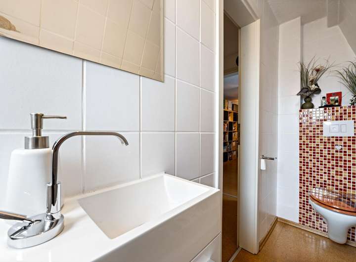 Modern ausgestatteter Duschbereich mit WC im Erdgeschoss