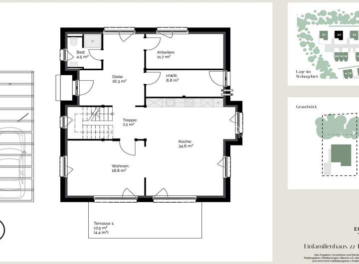 Neben moderner Energieeffizienz bietet das Haus viel Wohnkomfort mit Vorgarten, Garten und direktem Zugang zur angrenzenden Naturfläche – perfekt für Kinder und Naturliebhaber.