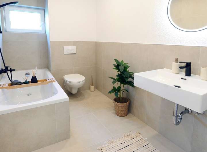 Balkon, Terrasse, Garten, Keller, Vollbad, Gäste-WC, Fliesen