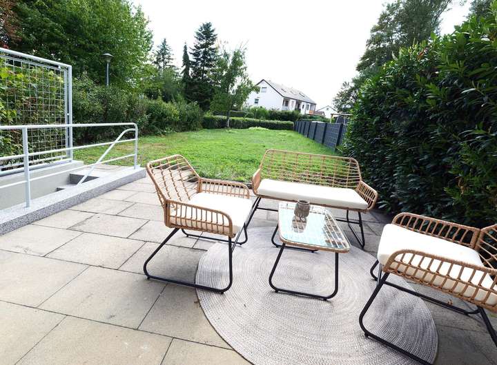 Der kleine, pflegeleichte Garten hinter dem Haus bietet Ihnen die Möglichkeit, die Sonne zu genießen oder einen gemütlichen Grillabend zu verbringen.
