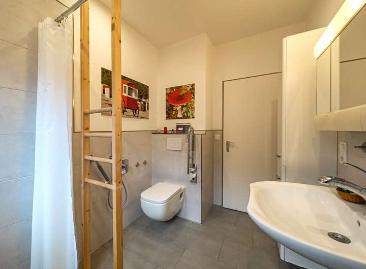 Sanitär: Saniertes Duschbad mit Fenster (saniert in 2019) sowie ein baujahrestypisches Duschbad im Dachgeschoss