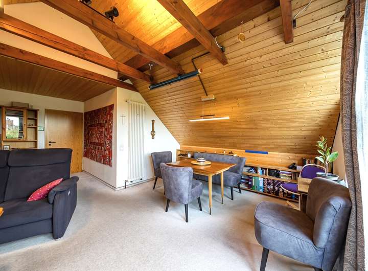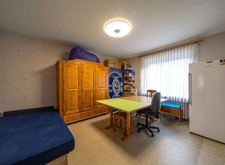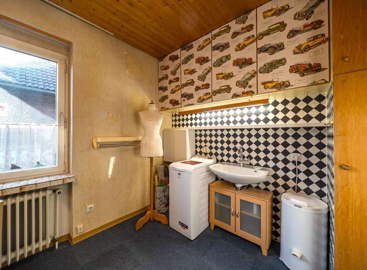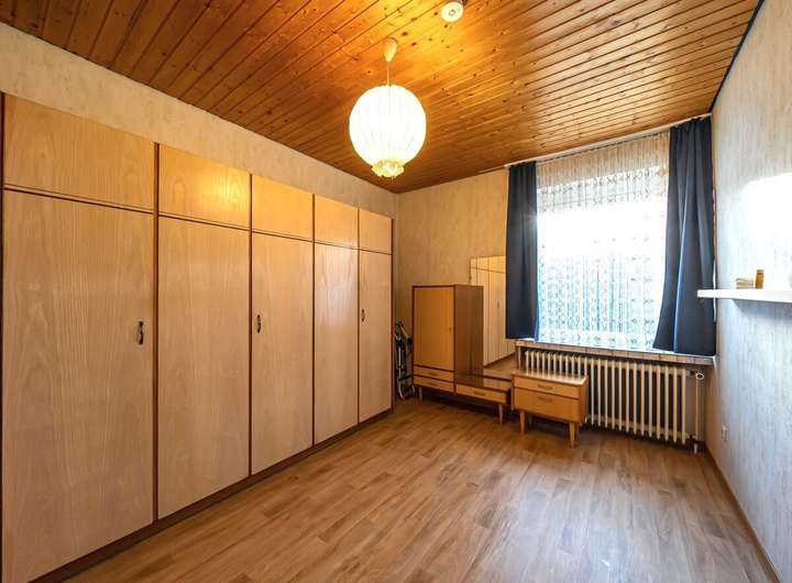 Großzügiges Einfamilienhaus auf einem rückwärtigen Grundstück, welches 1969 errichtet wurde und über Teilkeller, Erdgeschoss sowie Dachgeschoss verfügt.