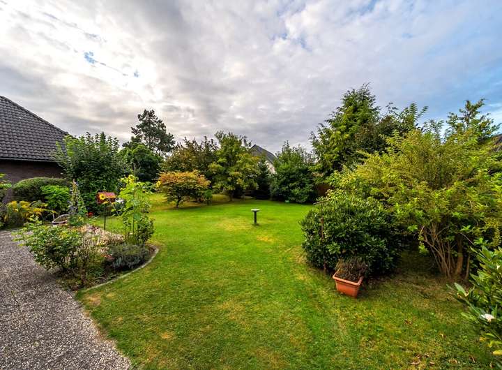 Garten: Pflegeleichter Garten mit Rasenflächen in Süd-West-Ausrichtung