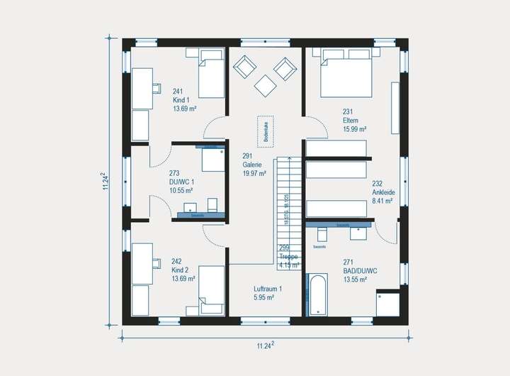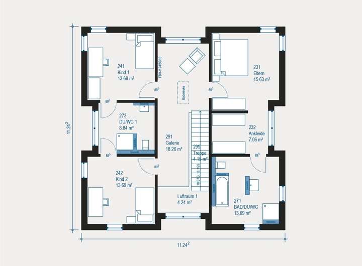 Jedes allkauf Haus wird individuell nach Ihren Wünschen geplant und gestaltet. Sowohl der Grundriss, die Dachform (Satteldach, Walmdach, Flachdach oder Pultdach) als auch zusätzliche Bauteile wie Erker, Balkon oder Giebel sind frei wählbar.