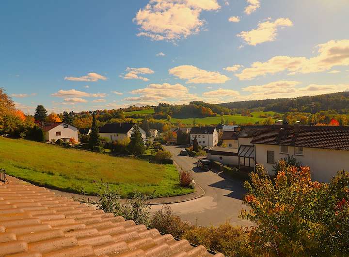 Das Grundstück befindet sich in einer ruhigen, gewachsenen Wohngegend mit herrlichem Panoramablick über die Landschaft. Die Umgebung ist geprägt von gepflegten Einfamilien- und Mehrfamilienhäusern, viel Grün und hohem Freizeitwert. Spazier- und Radwege, Wälder und Felder beginnen nahezu direkt vor der Haustür.