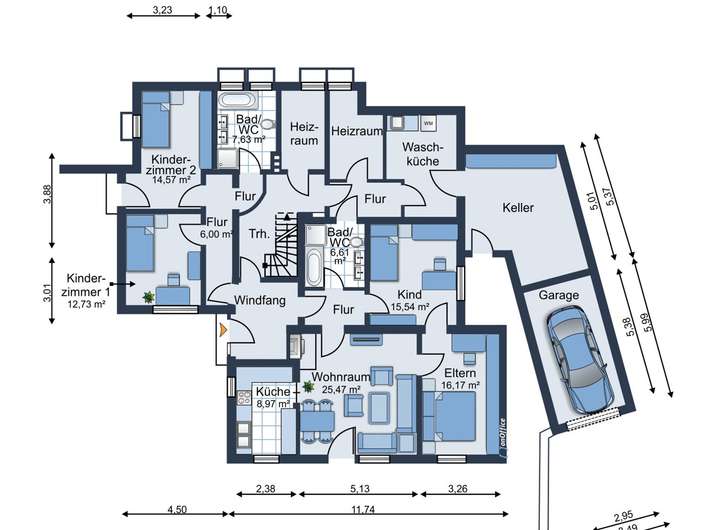 - Drei Bäder inkl. WC + Gäste-WC