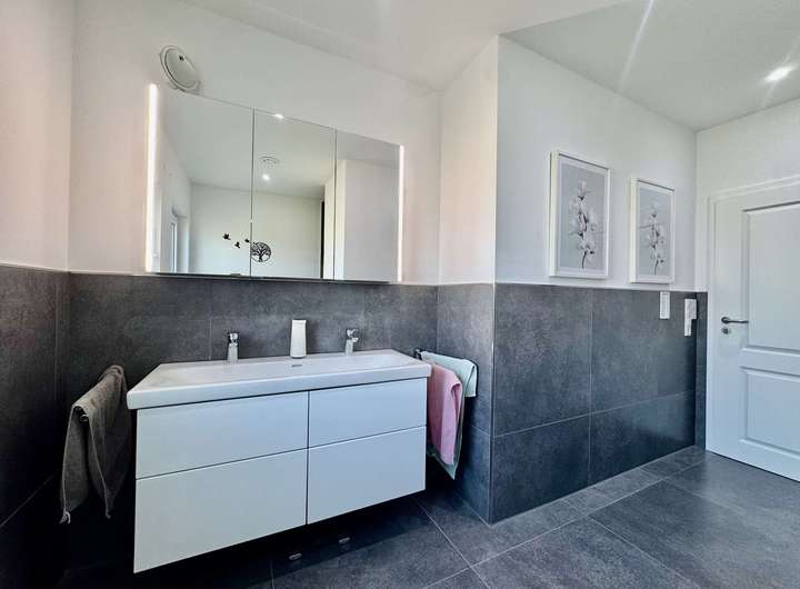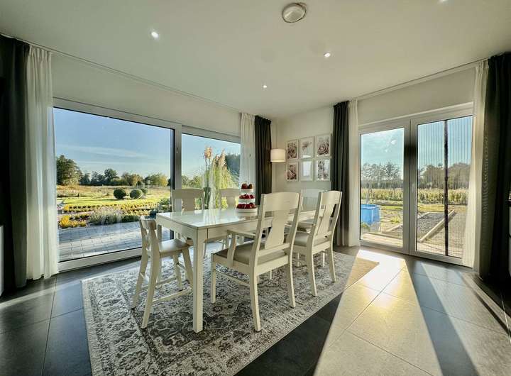 Dieses neuwertige Einfamilienhaus wurde im Jahr 2022 auf einem rund 35.000 Quadratmeter großen Grundstück errichtet, von dem etwa 1.700 Quadratmeter als Garten angelegt sind. Das stilvoll gestaltete Haus besticht durch seine elegante und zugleich zeitlose Ausstattung. Neben der angegebenen Wohnfläche steht zusätzliche Nutzfläche zur individuellen Verwendung zur Verfügung.