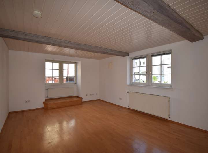Die im Erdgeschoß gelegene 2 Zimmerwohnung steht zur erneuten Vermietung bereit, die Maisonettewohnung ist derzeit vermietet und die Schreinerei ist verpachtet.
