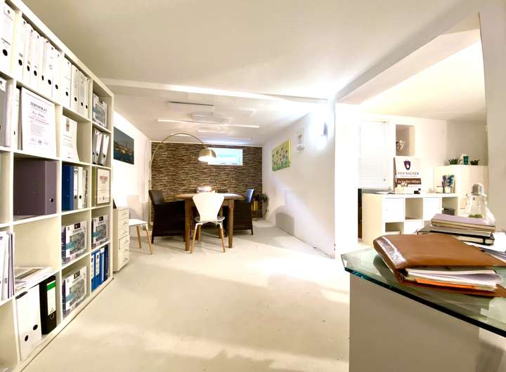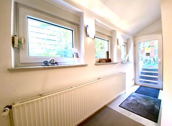 Das individuelle Haus hat einen Souterrain-Bereich mit Außenzugang für freiberufliche / kleingewerbliche / Einlieger / Gäste Zwecke geeignet. ca- 45 qm.