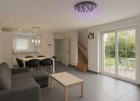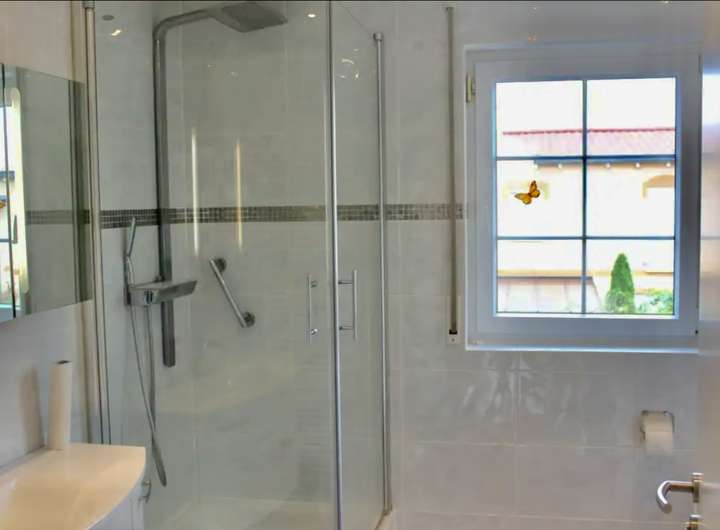 In der ersten Etage befinden sich drei gemütliche Schlafzimmer, die sich ideal für Familien eignen, sowie ein elegantes Badezimmer mit barrierefreier Dusche und Fußbodenheizung.