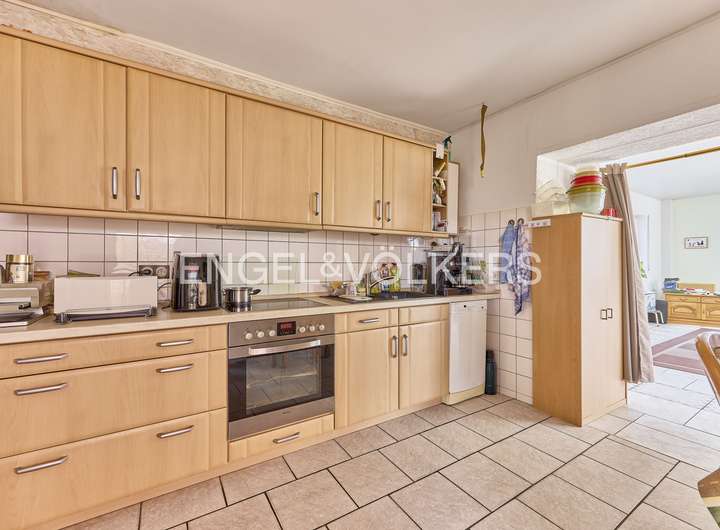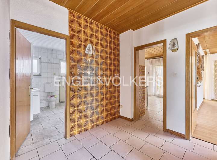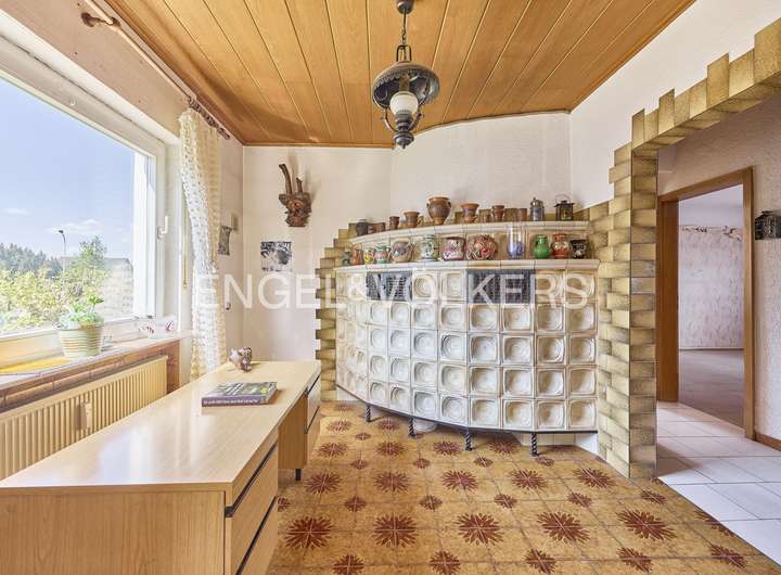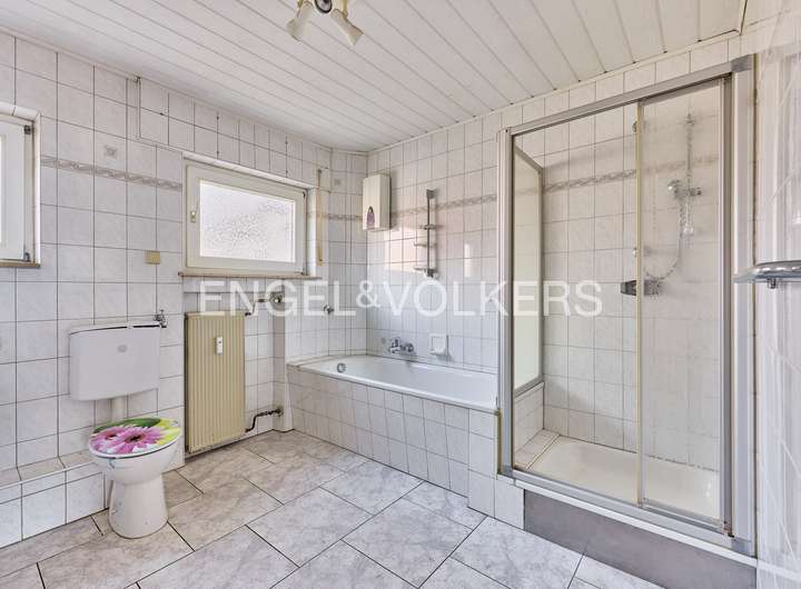 Das im Jahr 1994 erweiterte Erdgeschoss überzeugt mit ca. 111m² Wohnfläche, die sich auf vier gut geschnittene Zimmer, ein großzügiges Badezimmer mit Dusche und Badewanne sowie einen offen gestalteten Wohn- und Essbereich mit integrierter Küche verteilen. Ein Kachelofen im Wohnzimmer sorgt dabei für eine behagliche Atmosphäre und zusätzliche Wärme an kühleren Tagen. Der direkte Zugang zur Terrasse und dem liebevoll angelegten Garten schafft eine ideale Verbindung zwischen Innen- und Außenbereich.