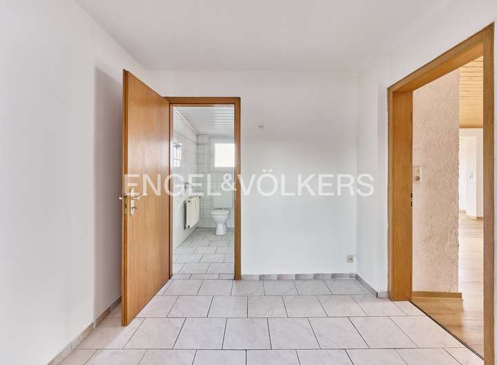 Im 1. Obergeschoss befindet sich eine abgeschlossene Wohneinheit mit ca. 107m², die seit 15 Jahren zuverlässig zu einer monatlichen Kaltmiete von 760€ vermietet ist – ein attraktives Plus für Kapitalanleger. Die derzeitige Miete ist als deutlich steigerungsfähig einzuschätzen und bietet somit weiteres Entwicklungspotenzial.