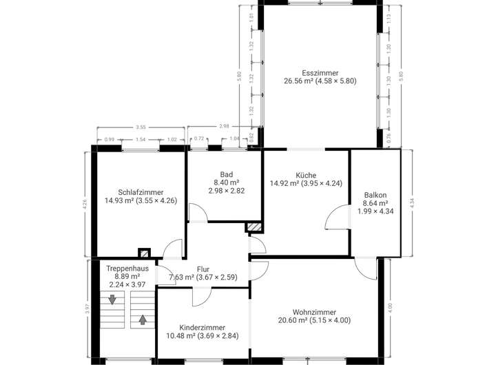 Das 88m² große Dachgeschoss bietet drei helle Zimmer sowie einen Balkon mit schönem Ausblick ins Grüne – ideal für Eigennutzer oder zur weiteren Vermietung.