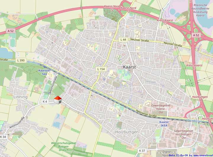 Kaarst verfügt durch die Anbindungen an die Autobahnen A 52 (Roermond-Düsseldorf) und A 57 (Köln-Krefeld) zudem über eine optimale Erreichbarkeit. Der Düsseldorfer Flughafen und das Messegelände sind in ca. 20 Minuten, der Flughafen Köln/Bonn ist in ca. 45 Minuten erreichbar.