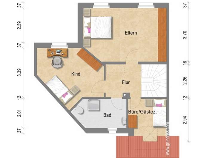 + 4 Schlafzimmer (Obergeschoss: ca. 21 m², ca. 15 m², ca. 5 m² und Dachgeschoss: ca. 8 m²)