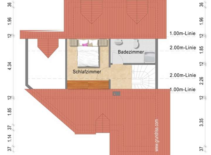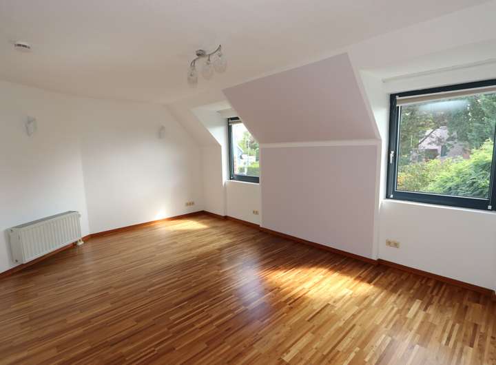 Das ausgebaute Dachgeschoss ergänzt den Wohnraum um ein weiteres Schlafzimmer (ca. 8 m²) und ein zusätzliches Duschbad – ideal als Gäste- oder Arbeitsbereich.