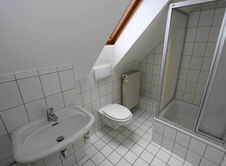 + Badezimmer mit bodentiefer Dusche im Obergeschoss