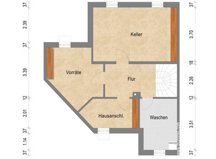 Das Haus ist voll unterkellert und verfügt über vier Räume, die reichlich Stauraum und flexible Nutzungsmöglichkeiten bieten.