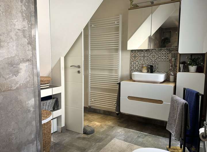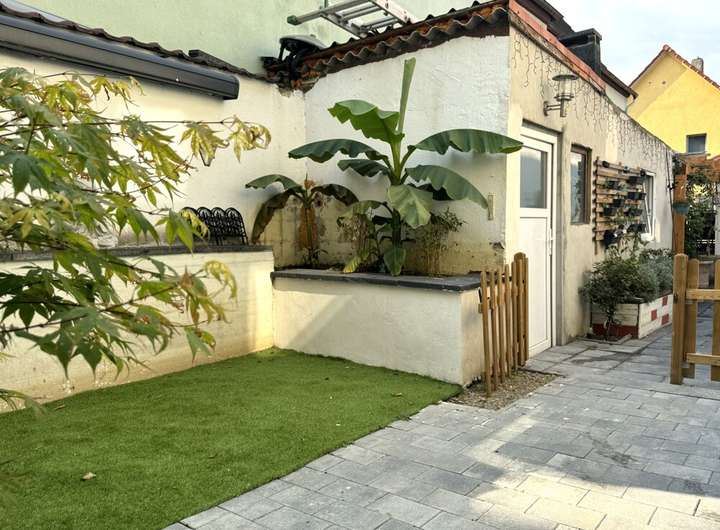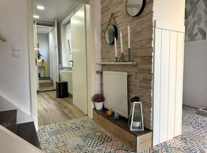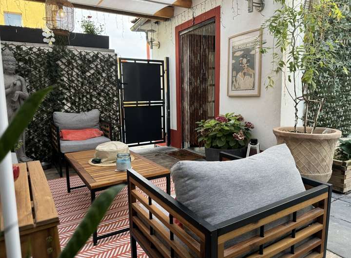 Ein besonderes Highlight ist der teilüberdachte Durchgang, der beide Häuser auf charmante Weise verbindet. Er wurde liebevoll zur Wohlfühloase gestaltet und lädt zum Verweilen ein – ein Ort zwischen Nähe und Rückzug.