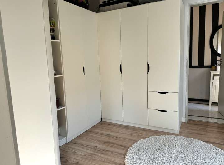 Beide Häuser bieten durchdachte Grundrisse und viel Raum für individuelles Leben. Im vorderen Haus befinden sich im Erdgeschoss ein Wohnzimmer, eine Küche und ein Badezimmer. Im Obergeschoss stehen drei Schlafzimmer, ein Ankleidezimmer sowie ein separates WC zur Verfügung – ideal für Familien mit Kindern.
