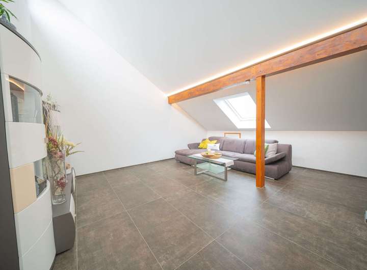 Das Dachgeschoss wurde liebevoll ausgebaut und begeistert mit seiner besonderen Raumhöhe und einem fast loftartigen Charakter. Im Untergeschoss befindet sich ein großzügiger Hobbyraum mit Wohnqualität, der sich hervorragend als Gästezimmer, Jugendzimmer oder Homeoffice eignet.